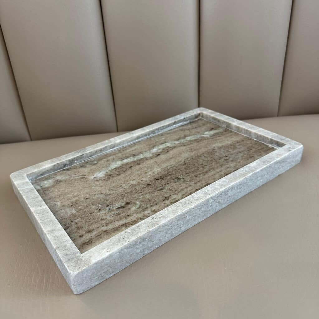 Odkryj elegancję i funkcjonalność z naszą tacą marmurową na kosmetyki. Wykonana z wysokiej jakości marmuru nie tylko przyciąga wzrok swoim minimalistycznym designem, ale także wprowadza odrobinę luksusu do Twojej codziennej pielęgnacji.
