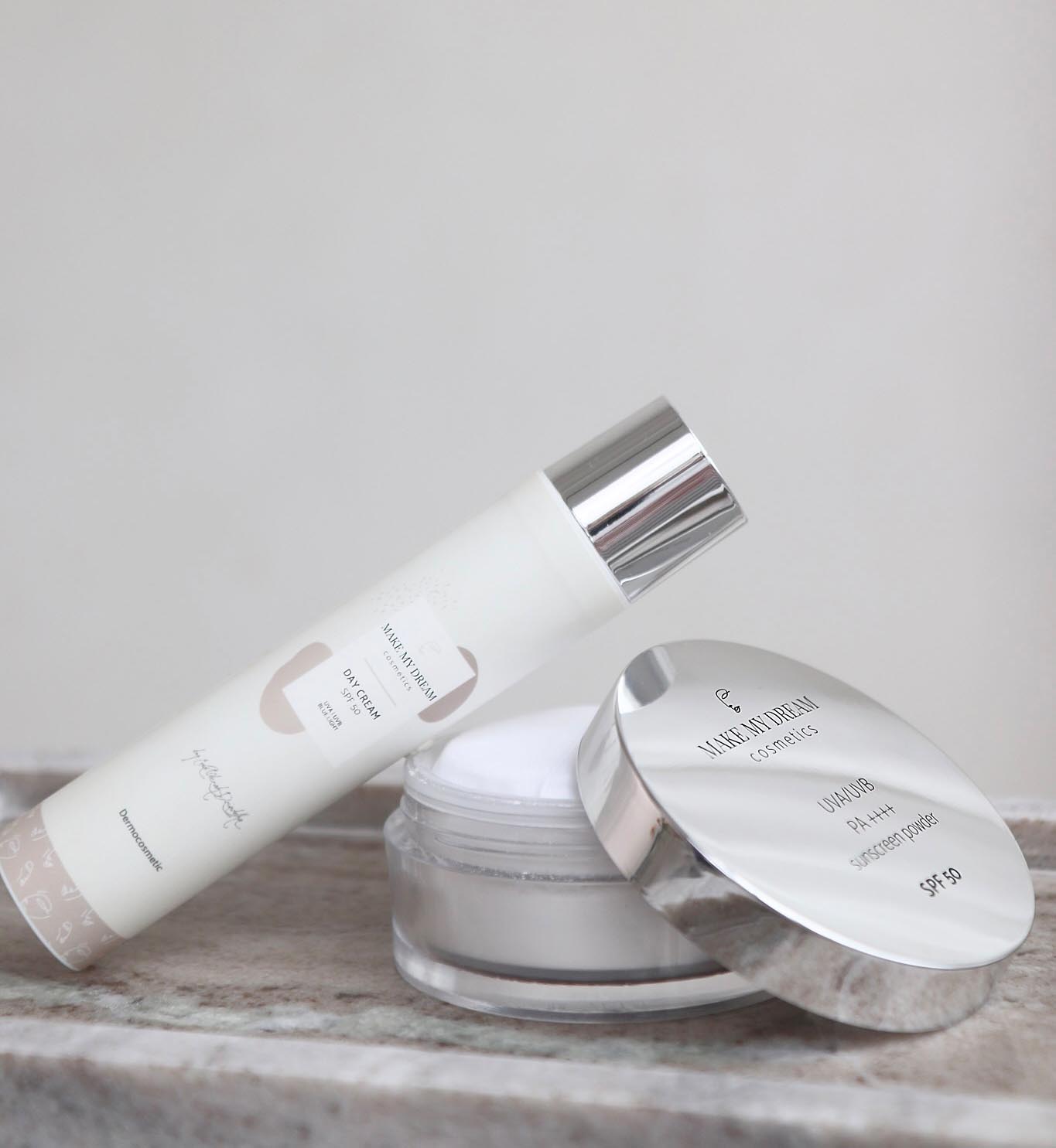 Odkryj sekret zdrowej, promiennej i doskonale chronionej cery z zestawem SPF 50 by MAKE MY DREAM. To wyjątkowe połączenie nawilżającego kremu na dzień z filtrem SPF 50 oraz transparentnego pudru ochronnego SPF 50, zaprojektowane, aby zapewnić Twojej skórze maksymalną ochronę przed szkodliwym promieniowaniem i jednocześnie zadbać o jej idealny wygląd.